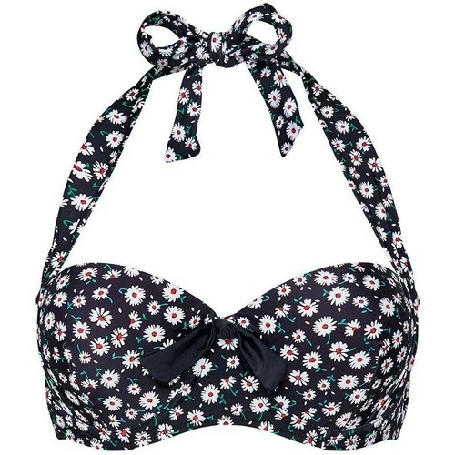 Haut de maillot de bain armaturé forme balconnet. Microfibre imprimée Marguerite. Nœud rétro à l’entre-seins. Bretelles multi-positions à nouer dans le cou et/ou le dos. Médaille logotée BB sur le côté. Disponible du 85B au 95D. S’associe avec le slip PARADIS ou la culotte haute PARADIS