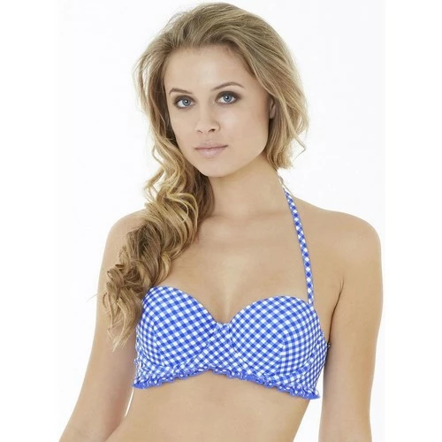 Haut balconnet coques moulées en microfibre. Imprimé Vichy. Finition point bourdon frisotant. Médaillon BB. Bretelles détachables. A nouer autour du cou et/ou dans le dos. Disponible du 85B au 95D