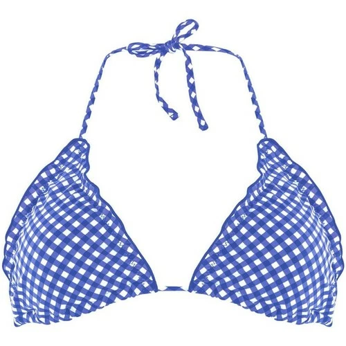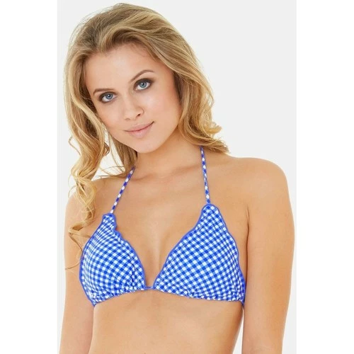 Haut triangle en microfibre. Imprimé Vichy. Coques amovibles. Finition point bourdon frisotant. Médaillon BB. A nouer autour du cou et/ou dans le dos. Disponible du 36 au 44