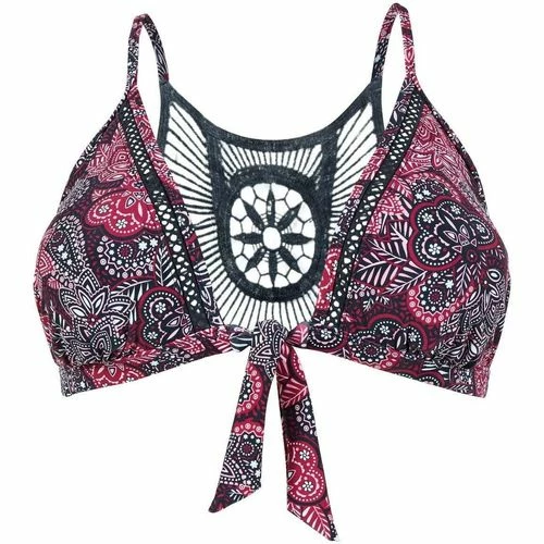 On craque totalement pour ce haut de maillot de bain forme triangle. Imprimé esprit cashmire, dos travaillé avec patch en guipure finition crochet. Au top de la mode pour lézarder au soleil cet été ! Lien de nouage sur le devant. Coussinets amovibles. Médaille BB argentée sur le côté droit du maillot. On en profite, du 36 au 42.