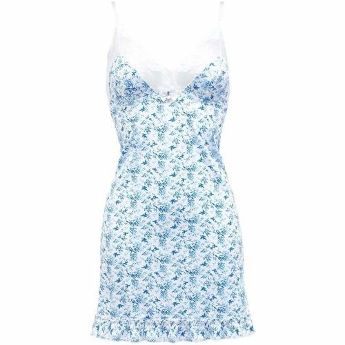 Soutien gorge armatures. Nuisette en microfibre imprimée au motif toile de jouy revisitée. Maxi galon de dentelle florale au décolleté. Noeud gros-grain et bijou émaillé à l’entre-seins. Bretelles fines réglables. Médaillon siglé BB. Finition volantée en bas de nuisette. Disponible du 38/40 au 46/48
