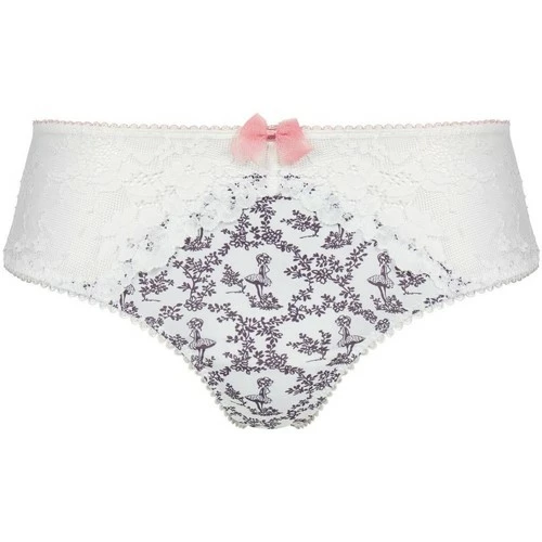 Microfibre imprimée esprit Toile de Jouy Dentelle florale élastiquée au style Vintage Nœud coloré à la taille Fond doublé d’un gousset 100% coton
