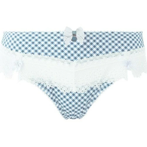 Shorty en dentelle motif marguerite, imprimé Vichy. Tulle plumetis dans le dos. Noeud bicolore et bijou coloré à la ceinture. Fond doublé d’un gousset 100% coton. Disponible du 36 au 44.