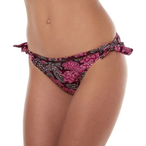 ImprimĂ© d’un motif cashmire tricolore, bas de maillot de bain bikini avec galon ajourĂ© Ă la taille. Liens de nouage sur le cĂ´tĂ© du maillot. MĂ©daille BB argentĂ©e au dos. Existe du 36 au 42.