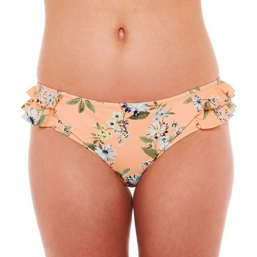 Slip en microfibre imprimée au motif Fleurs bucoliques. Finition effet volanté sur les hanches. Slip doublé. Médaille logotée BB dans le dos. Disponible du 36 au 44. S’associe avec le haut push-up FARNIENTE ou le haut armaturé FARNIENTE