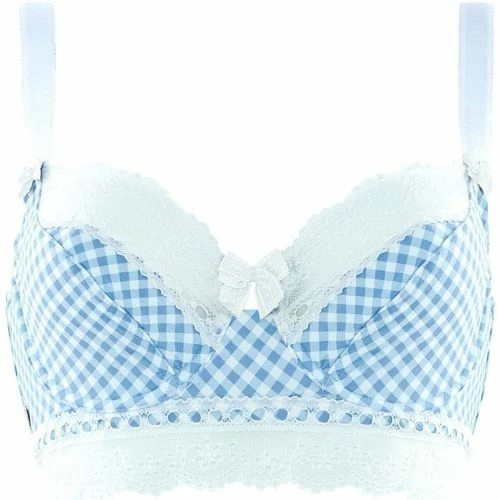 Soutien-gorge armatures. Microfibre imprimée Vichy. Large galon de dentelle effet passe-ruban. Noeuds contrastés. Fermeture 3 agrafes, 3 positions. Disponible du 90D au 105E